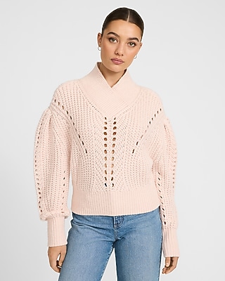 Open Stitch Shawl Neck Puff Sleeve Sweater in Bloomington, MN