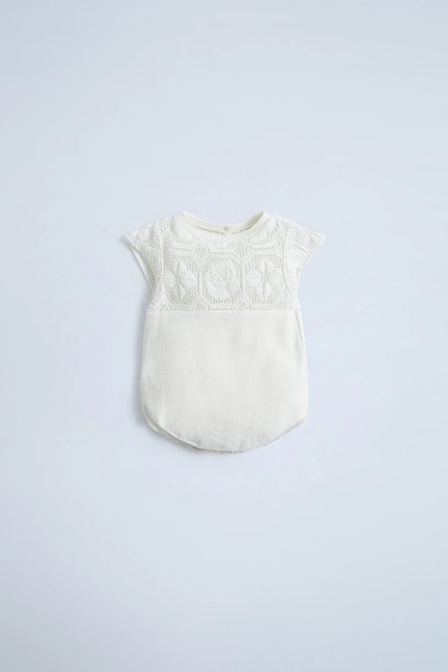 OPENWORK AND EMBROIDERED KNIT OVERALLS