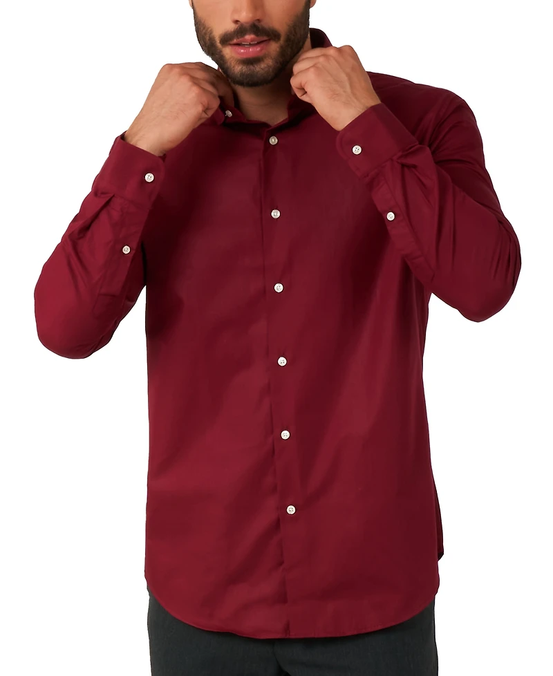No wardrobe is complete without a basic men's shirt. This plain solid color blouse has a very stylish fit and is ideal to combine with all kinds of clothes - for example a formal jacket, a funny suit from OppoSuits, a Halloween costume or just casual jeans. Whether you're going to a business event, a festival or any other party, your outfit is not completed without this collared shirt!