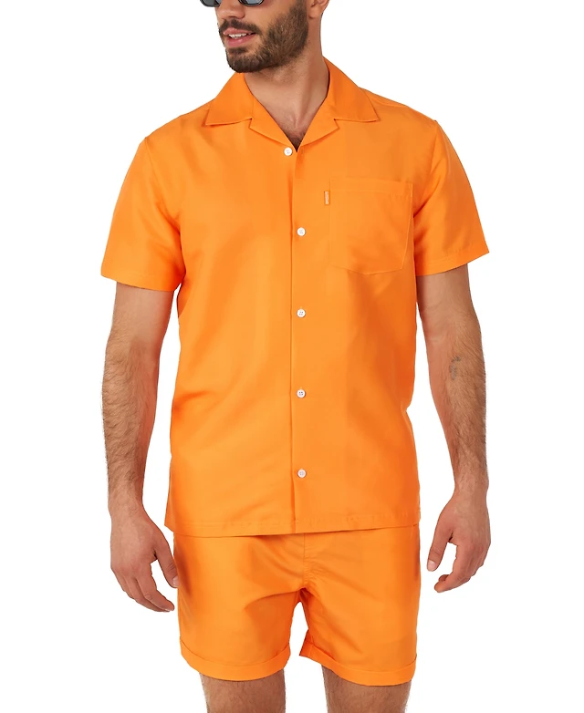 OppoSuits Men's Summer Set - 2 Piece Beach Wear set - Orange - Matching Shirt and Shorts