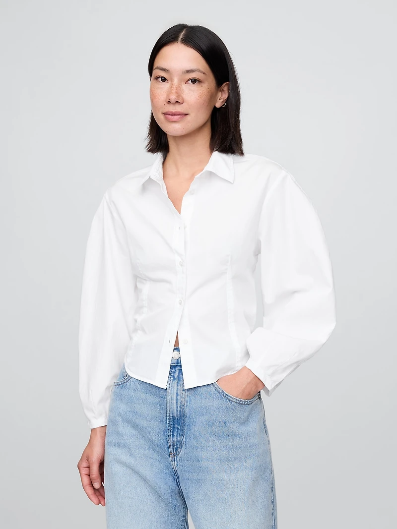 Organic Cotton Poplin Balloon-Sleeve Shirt