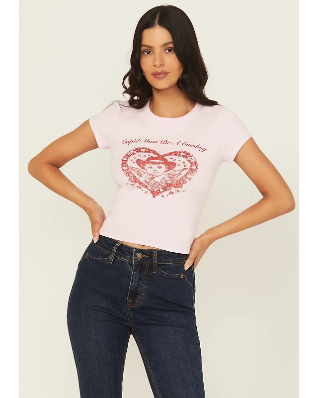 Originality Women's Cupid Cowboy Short Sleeve Baby Graphic Tee