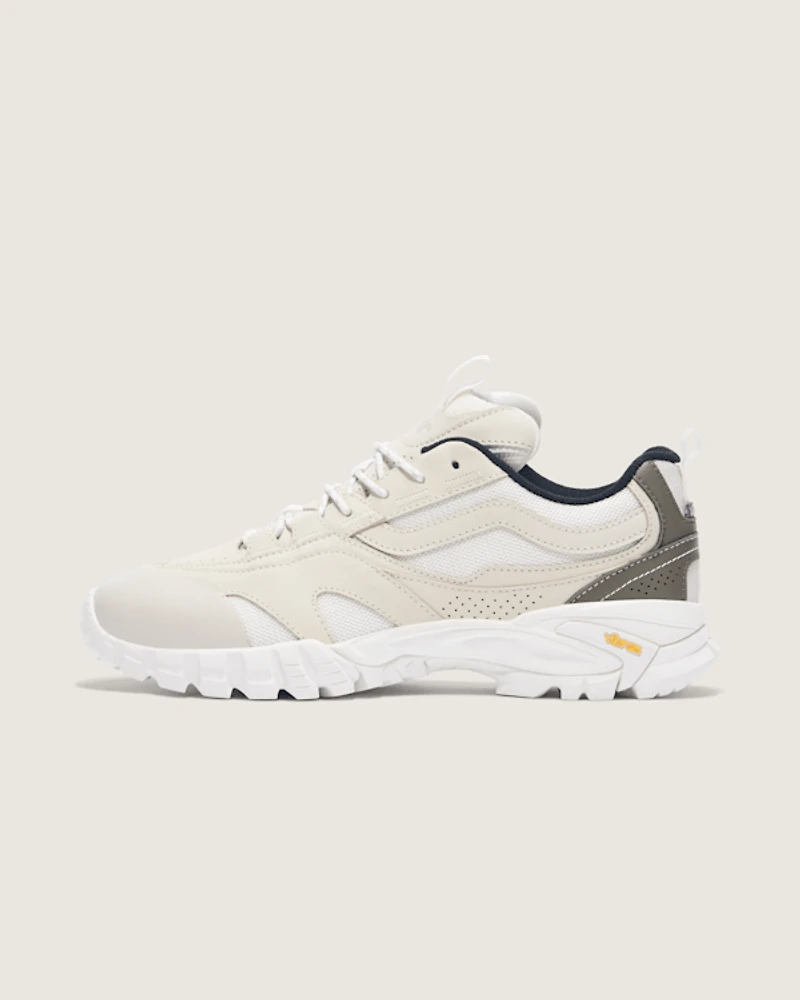 An obscure archive model enhanced with waterproof Nubuck upper and mesh for breathability, ensuring you're comfortable when things get steep. Added enhancements include a Vans custom Vibram outsole for high traction, a cushioned insole for support and shoe longevity, and reflective hiking laces to keep you visible.