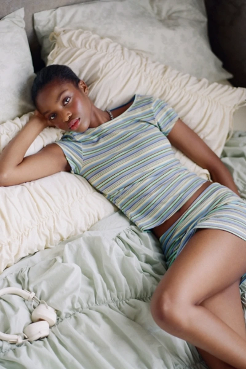 Better-than-basic Out From Under baby tee designed in a so soft cotton blend knit. The perfect tee in a slim fit featuring a crew neckline, short sleeves and cropped hem. Perfect layered and on its own, sure to become a new wardrobe staple. Find the Out From Under Bec Collection only at Urban Outfitters.