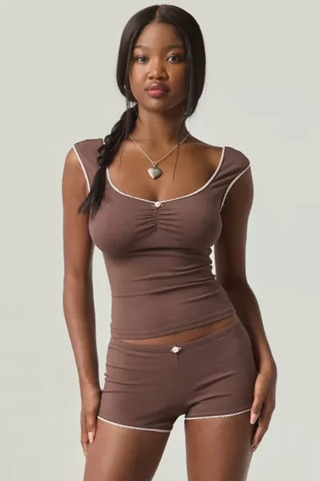 Out From Under Sweet Dreams Tie-Front Top + Micro Short PJ Set