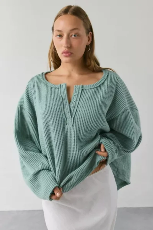 Out From Under Living The Dream Waffle Knit Long Sleeve Henley Tee
