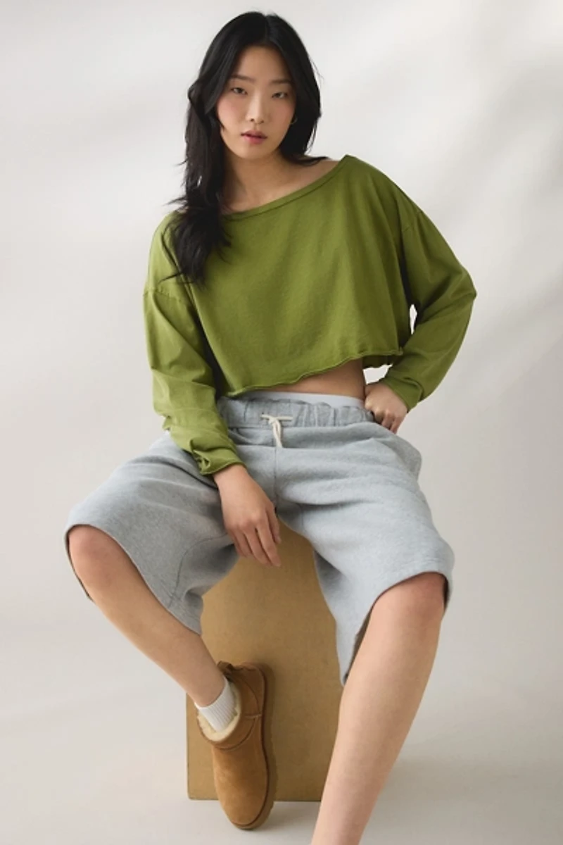 Better-than-basic Out From Under long sleeve tee designed in a boxy & cropped fit. The perfect tee designed in 100% cotton featuring a wide boatneck that can be worn on & off-the-shoulder, slouchy drop-shoulder long sleeves with ribbed cuffs and raw-cut hem for an effortless vibe. Perfect layered with bralettes, sports bras, bandeaus and on its own for endless ways to wear! Only at UO.