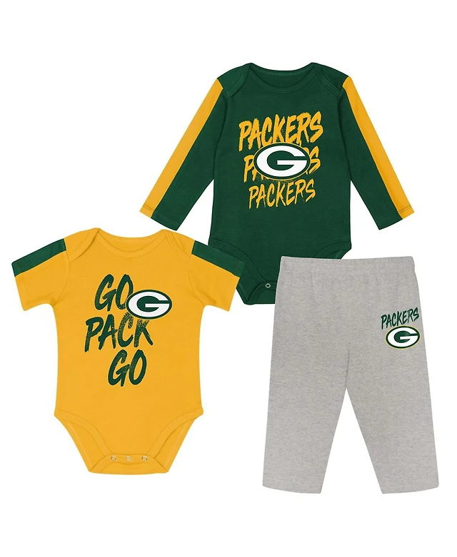 Outerstuff Baby Boys and Girls 3-Piece Green/Gold Green Bay Packers Double Down Creeper and Pants Set