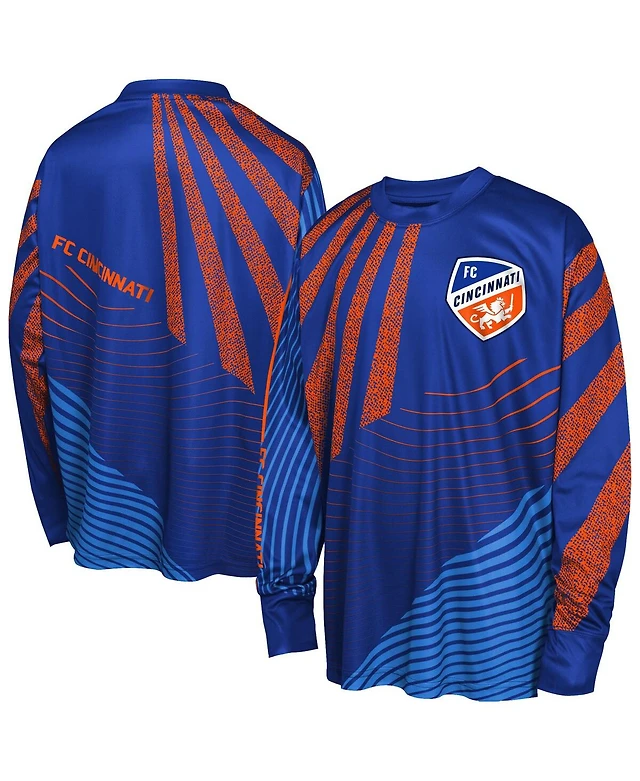 Outerstuff Big Boys and Girls Blue Fc Cincinnati Nifty Netminder Long Sleeve T-Shirt
