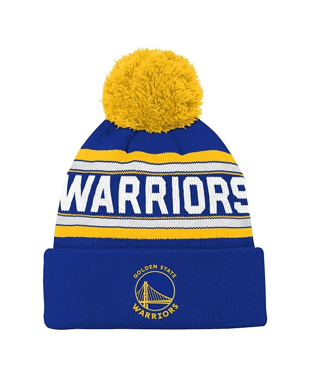 Outerstuff Big Boys and Girls Royal Golden State Warriors Backboard Jacquard Cuffed Knit Hat with Pom