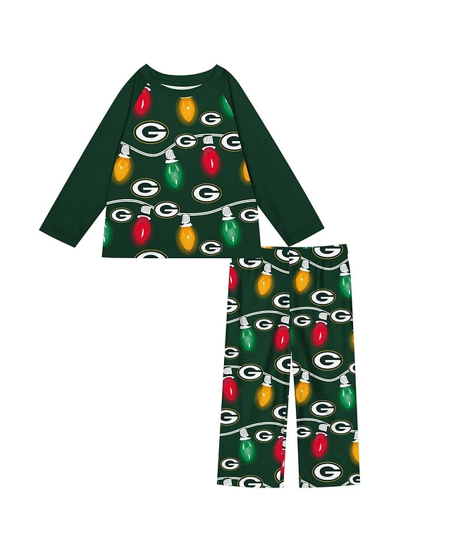 Outerstuff Toddler Green Bay Packers Two-Piece Garland Holiday Long Sleeve Pajama Set
