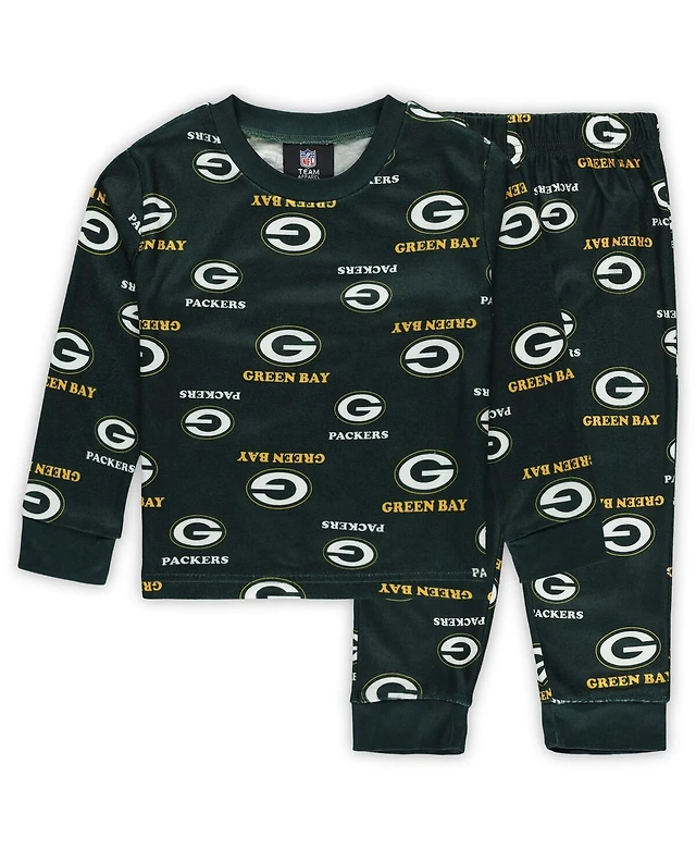 Outerstuff Toddler Green Green Bay Packers All-Over-Print Long Sleeve T-Shirt and Pants Sleep Set