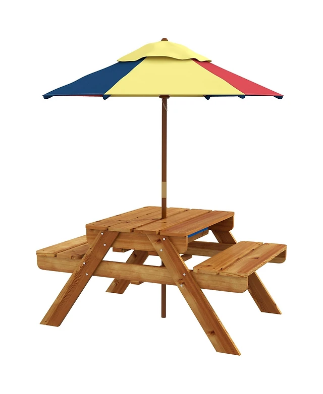 3-in-1 Kids Picnic Table Wooden Outdoor Sand & Water Table w/Umbrella Play Box es