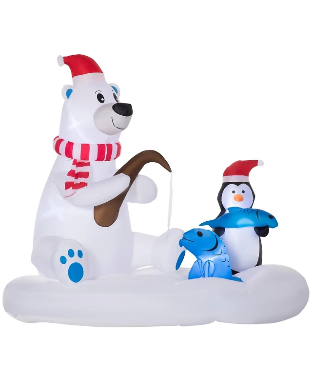 Outsunny 6' Inflatable Christmas Polar Bear and Penguin Fishing on Board Led