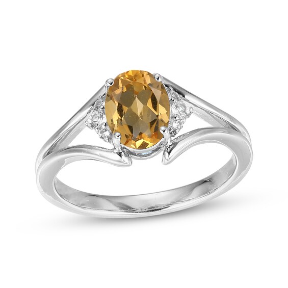 Oval-Cut Citrine & White Lab-Created Sapphire Ring Sterling Silver