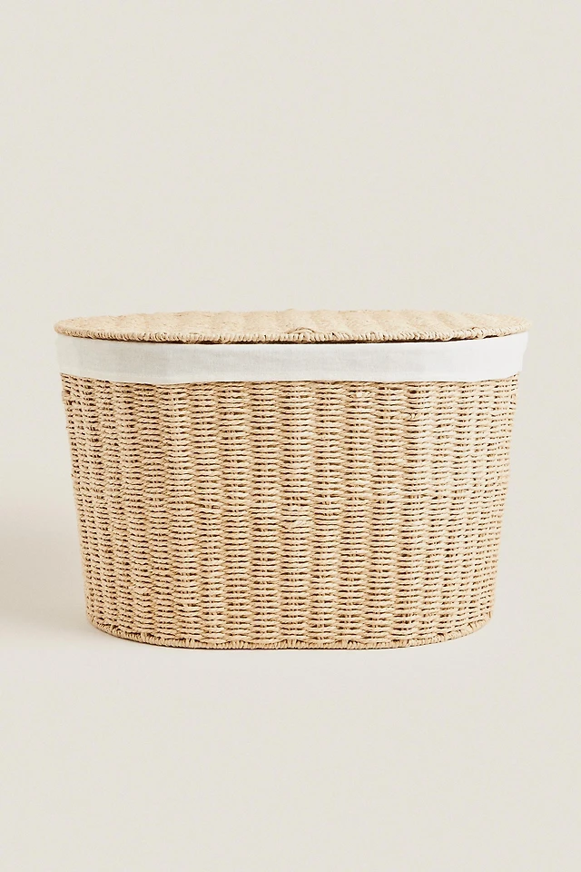 OVAL FABRIC-LINED LAUNDRY HAMPER
