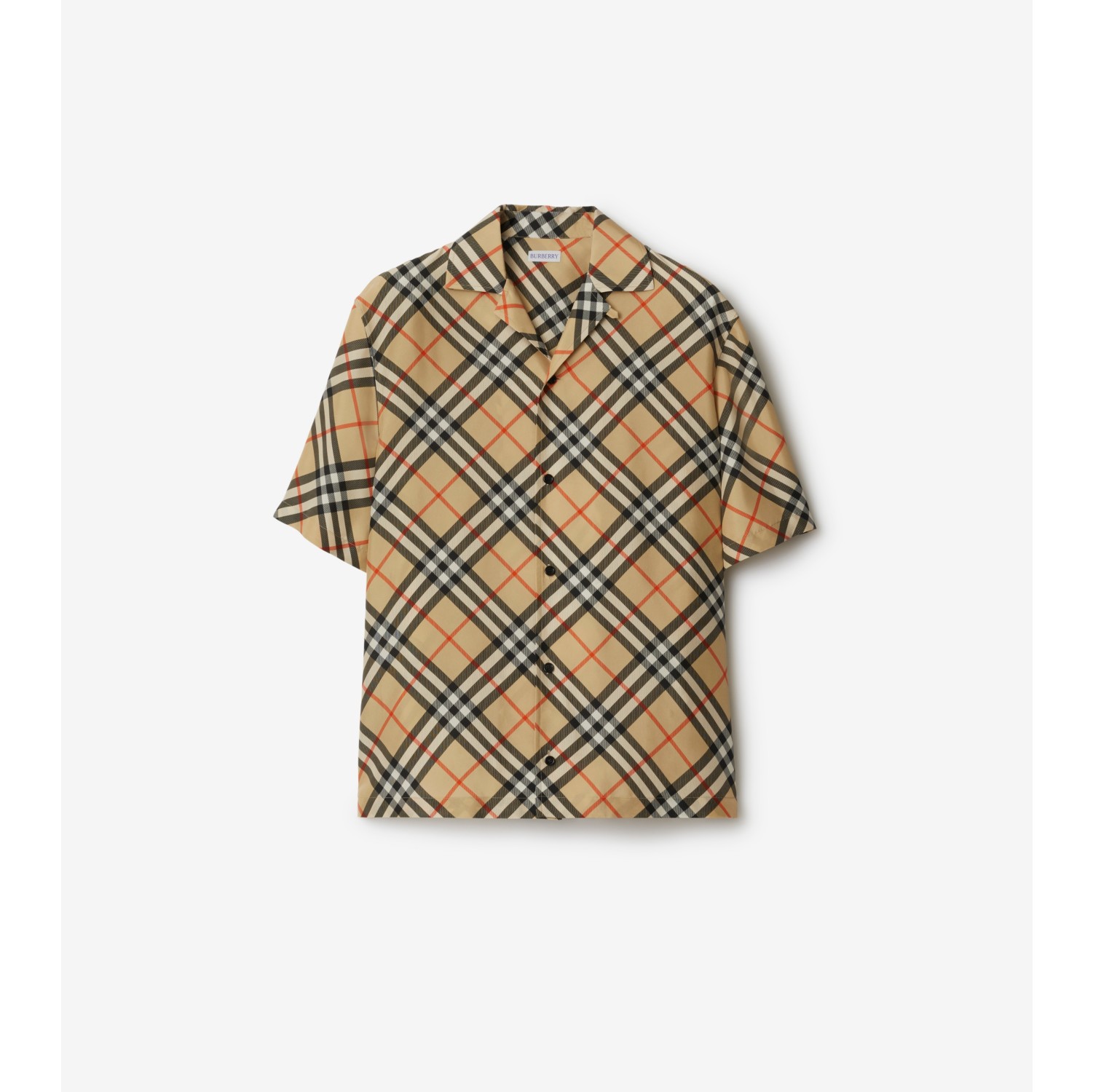 A short-sleeved shirt in silk poplin printed with the Burberry Check. The style is made in Italy and cut to an oversized fit. Part of Burberry Classics, wardrobe foundations with a unique Burberry slant. Button closure Revere collar Straight hem