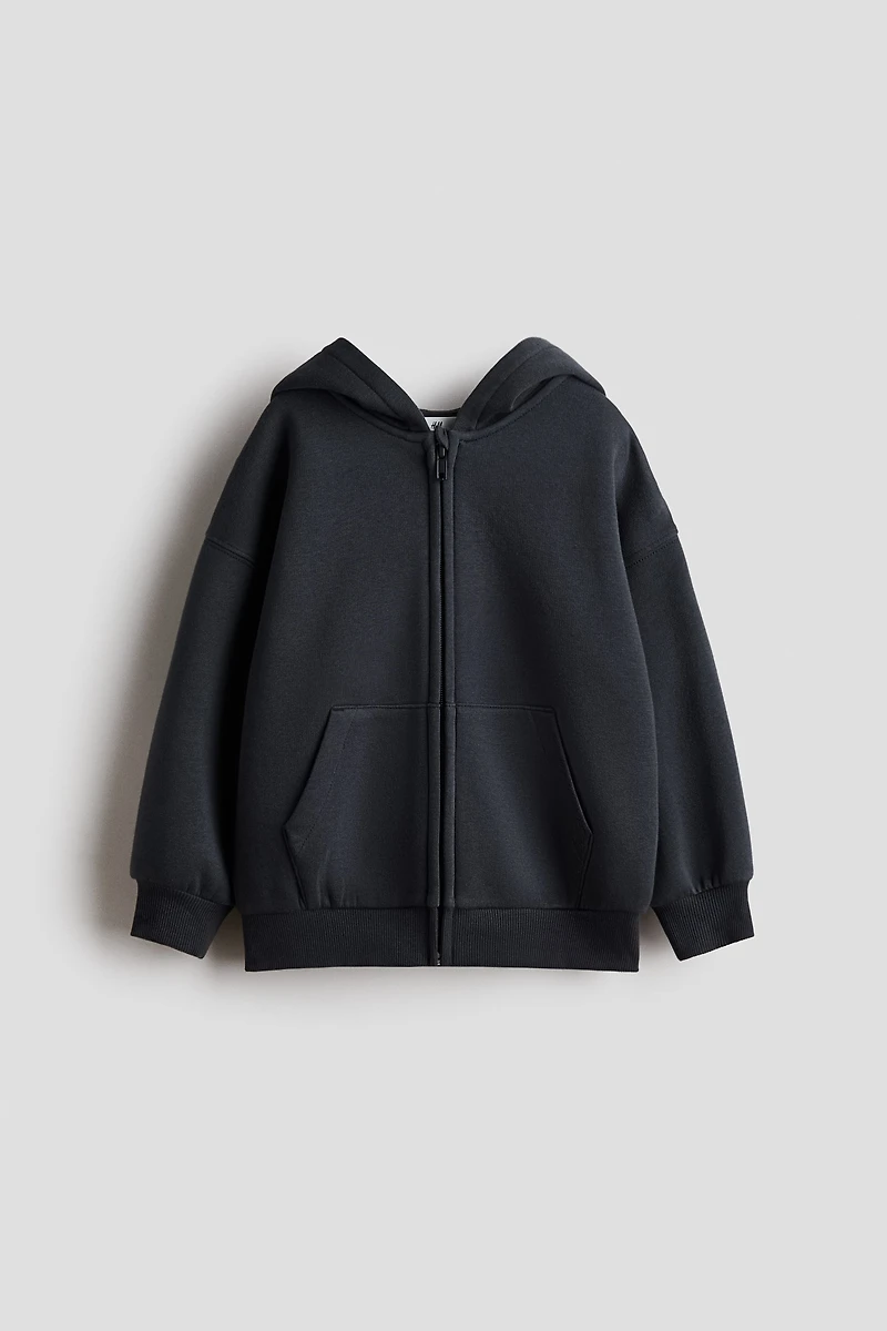 Oversized sweatshirt hoodie with a soft, brushed inside. Jersey-lined hood, concealed zipper at front with anti-chafe chin guard, and front pockets. Dropped shoulders, long sleeves, and ribbing at cuffs and hem.