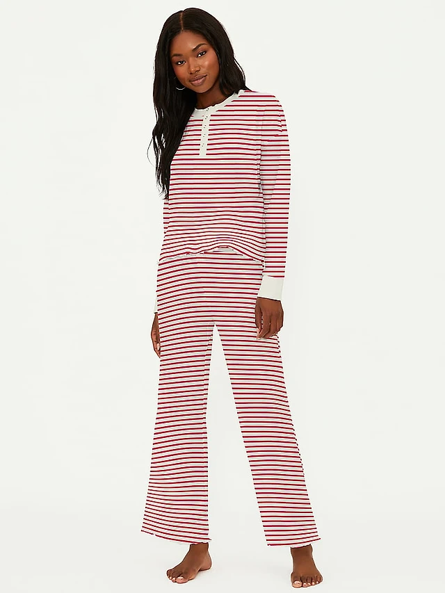 Modal-Cotton Shimmer Stripe Long Pajama Set
