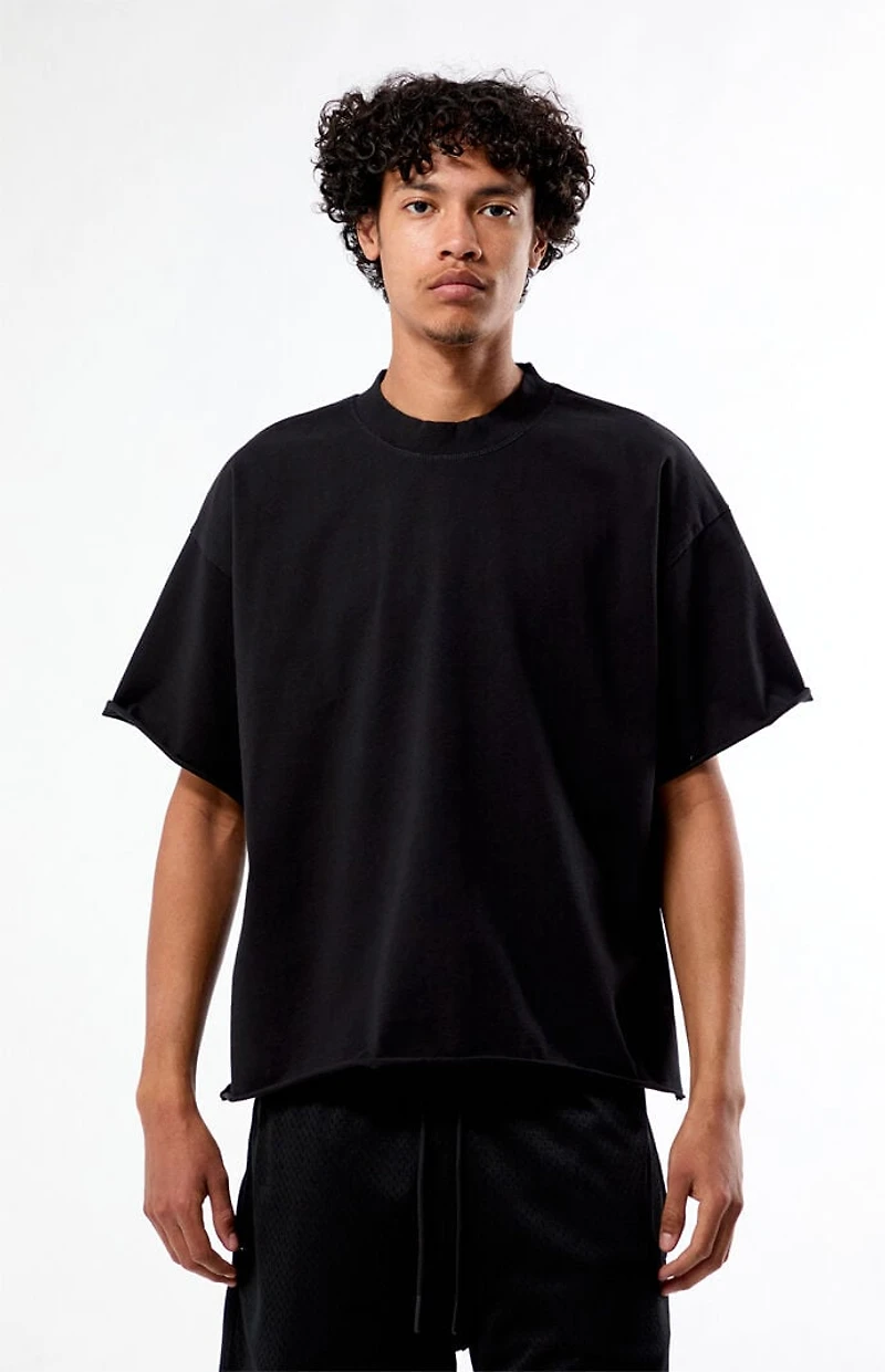 The Black Heavyweight Cropped T-Shirt from Pacsun delivers everyday comfort with a clean, classic look and a trendy finish. Crafted from heavyweight, premium fabric, it features short raw sleeves, a crew neckline, a raw hem and a cropped fit.
