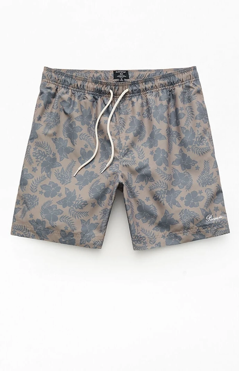 Pacsun Brown Flower 6.5" Swim Trunks