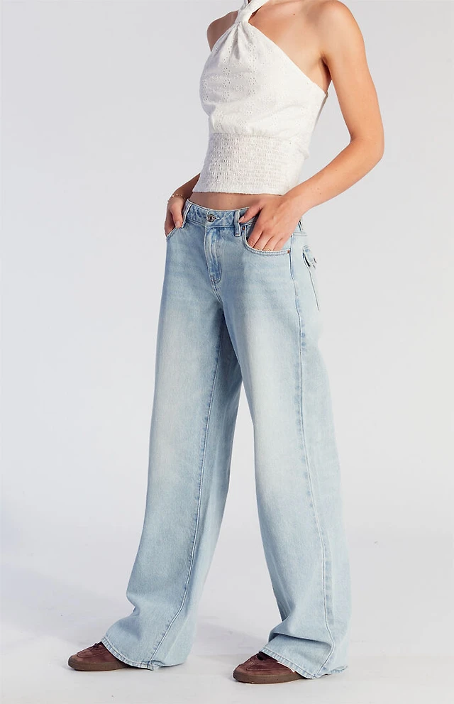 Pacsun Casey Low Rise Baggy Jeans Button Pocket Light Indigo