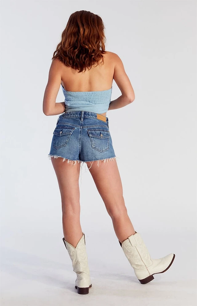 Pacsun Light Indigo Button Fly High Waisted Denim Festival Shorts