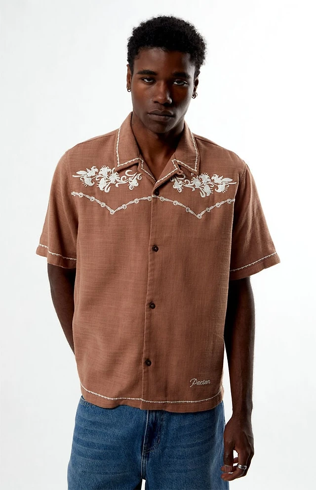 Pacsun Tan Western Embroidered Oversized Resort Camp Shirt