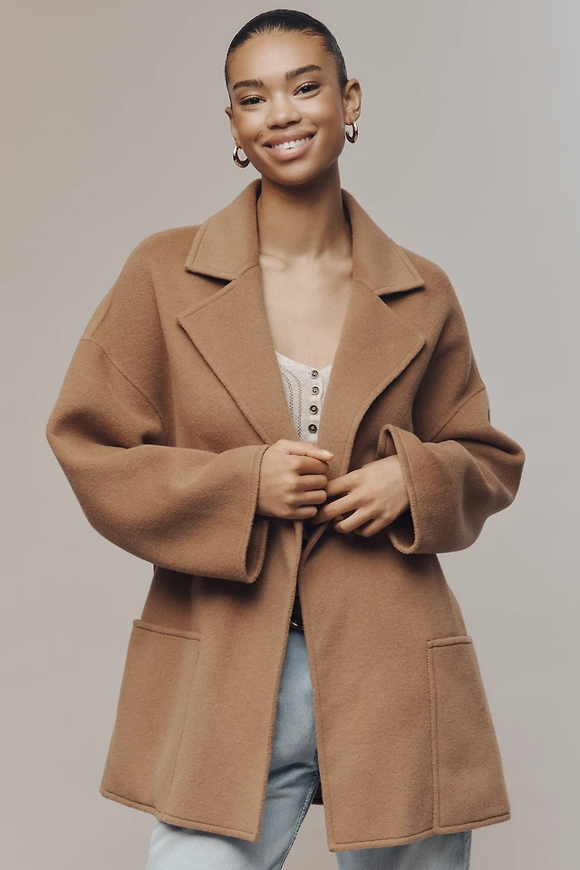 By Anthropologie Double Breasted Wool Blend Trench Coat