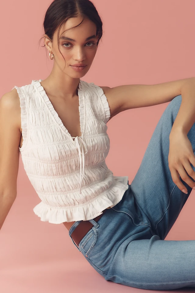Pilcro Sleeveless Open-Back Denim Peplum Top