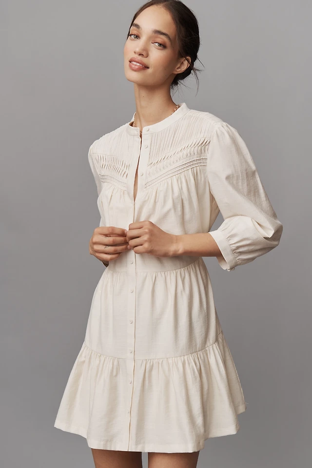 PAIGE Fiume Linen Blend Tiered Mini Dress