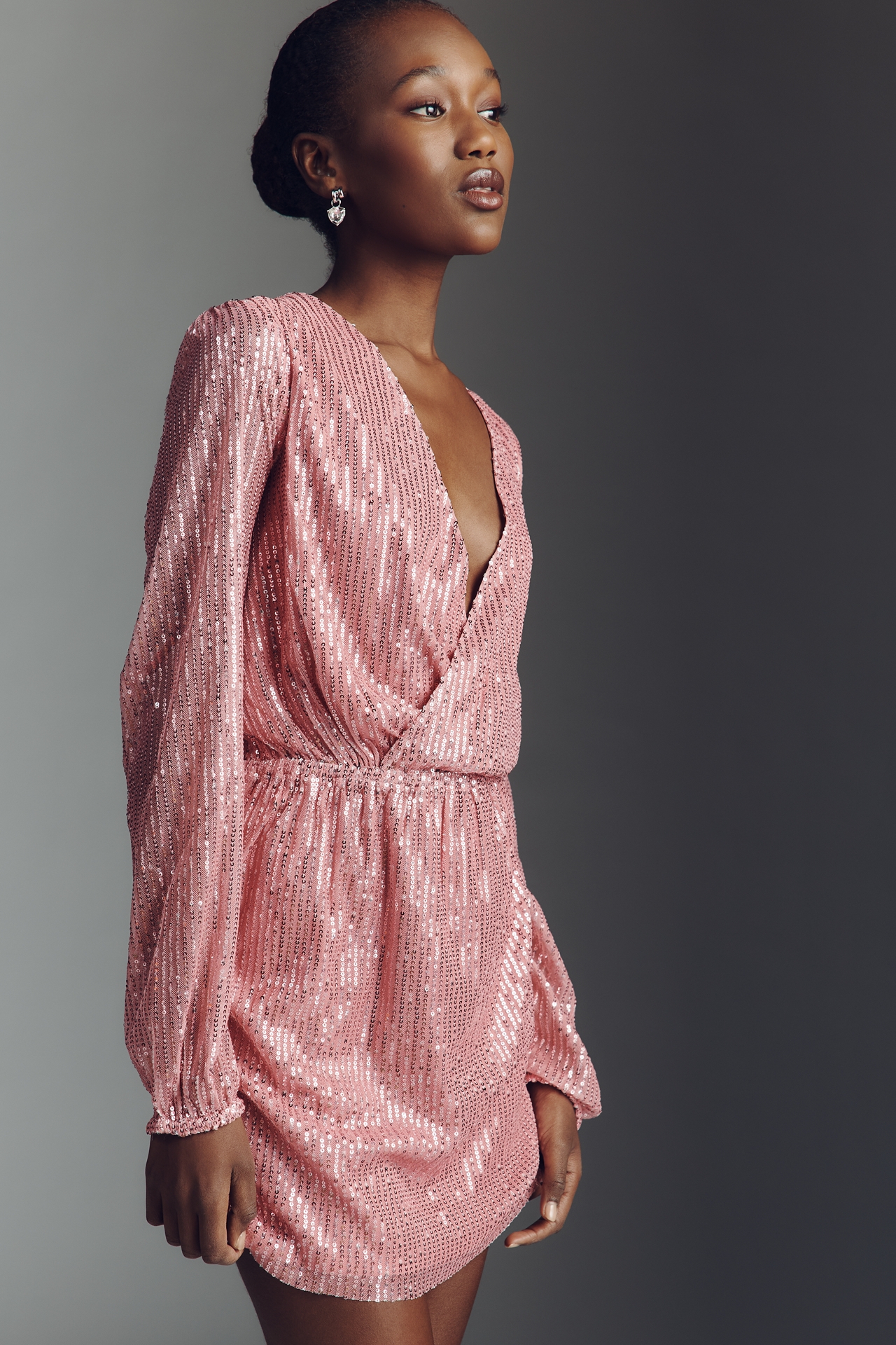 Walter Baker Callypso Long-Sleeve V-Neck Sequin Mini Dress