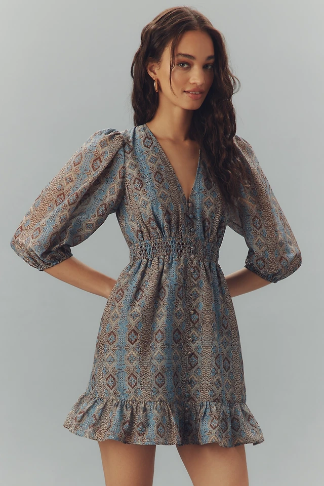 PAIGE Ophelie Silk Blend Puff-Sleeve V-Neck Mini Dress