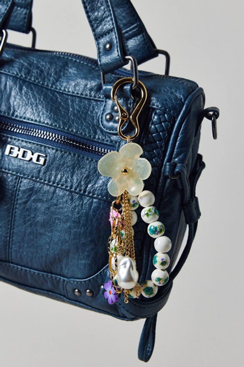 Brighten up your bag or keys with this painted floral charms keychain. Featuring a gold metal fringe chain, delicate floral beads and a secure clip closure, it’s a cute accessory for everyday charm.