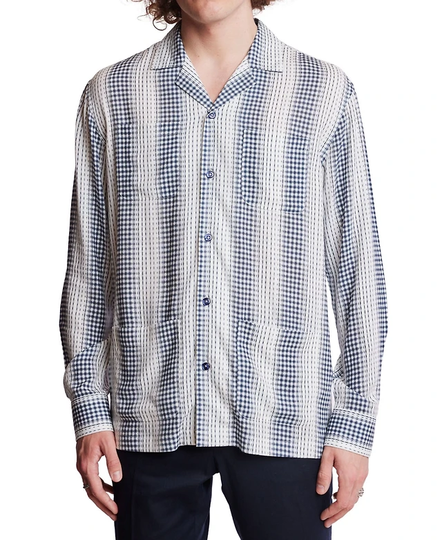 Paisley & Gray Men's Slim Fit Long Sleeve Diamond Striped Button Front Camp Shirt