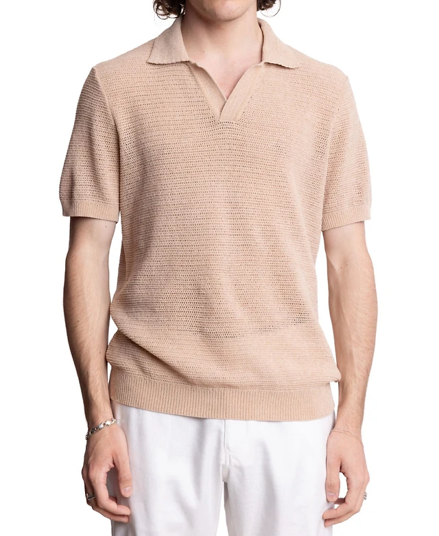 Paisley & Gray Men's Slim Fit Short Sleeve Open Collar Knit Polo Sweater
