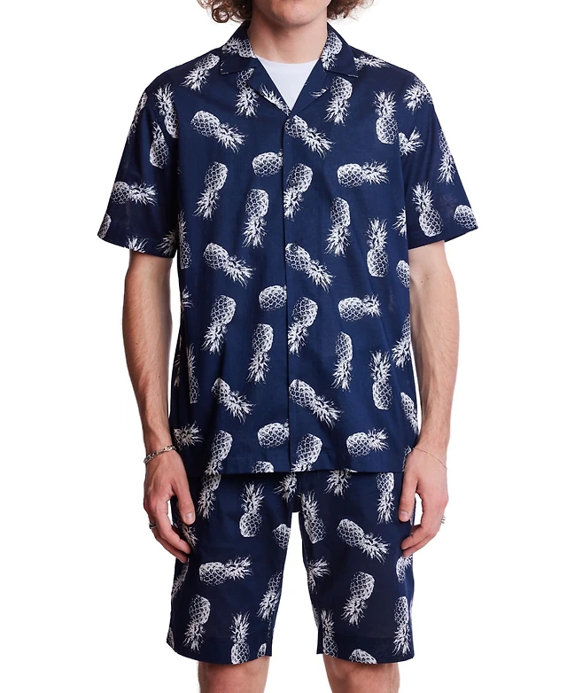 Paisley & Gray Men's Slim Fit Short Sleeve Pineapple Print Button Front Camp Shirt