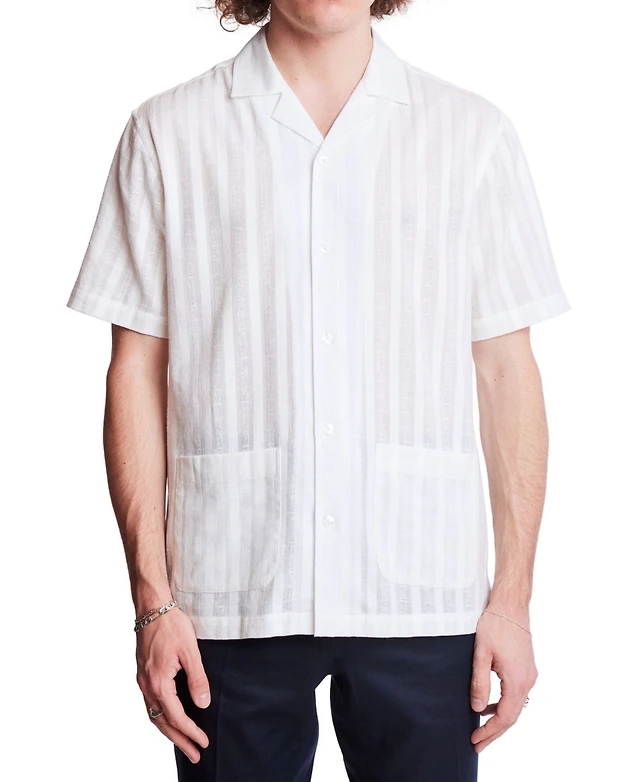 Spring + Mercer Men's Camp Collar Short Sleeve Textured Button-Up Shirt