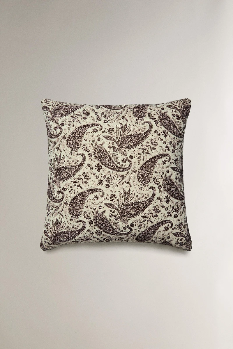 Throw pillow cover made of cotton and linen with a paisley print.