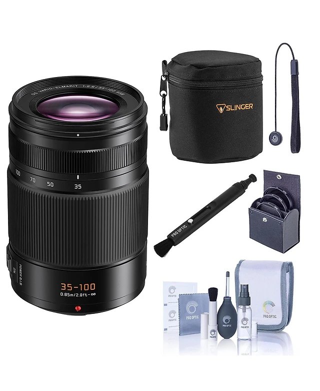 Panasonic Leica Dg Vario-Elmarit 35-100mm f/2.8 Lens, Bundle with Small Lens Case, 58mm Filter Kit, Lens Cleaner, Cleaning Kit and Lens Cap Tether