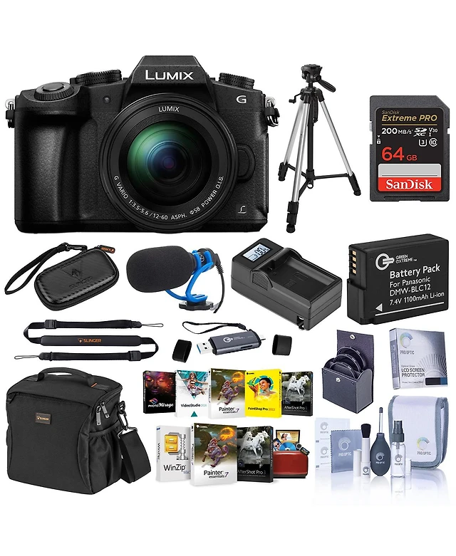 Panasonic Lumix Dmc-G85 Mirrorless Camera w/12-60mm f/3.5-5.6 Lumix G Ois Lens Bundle with Memory Card, Bag, Microphone, Tripod, Battery, Charger, Fil
