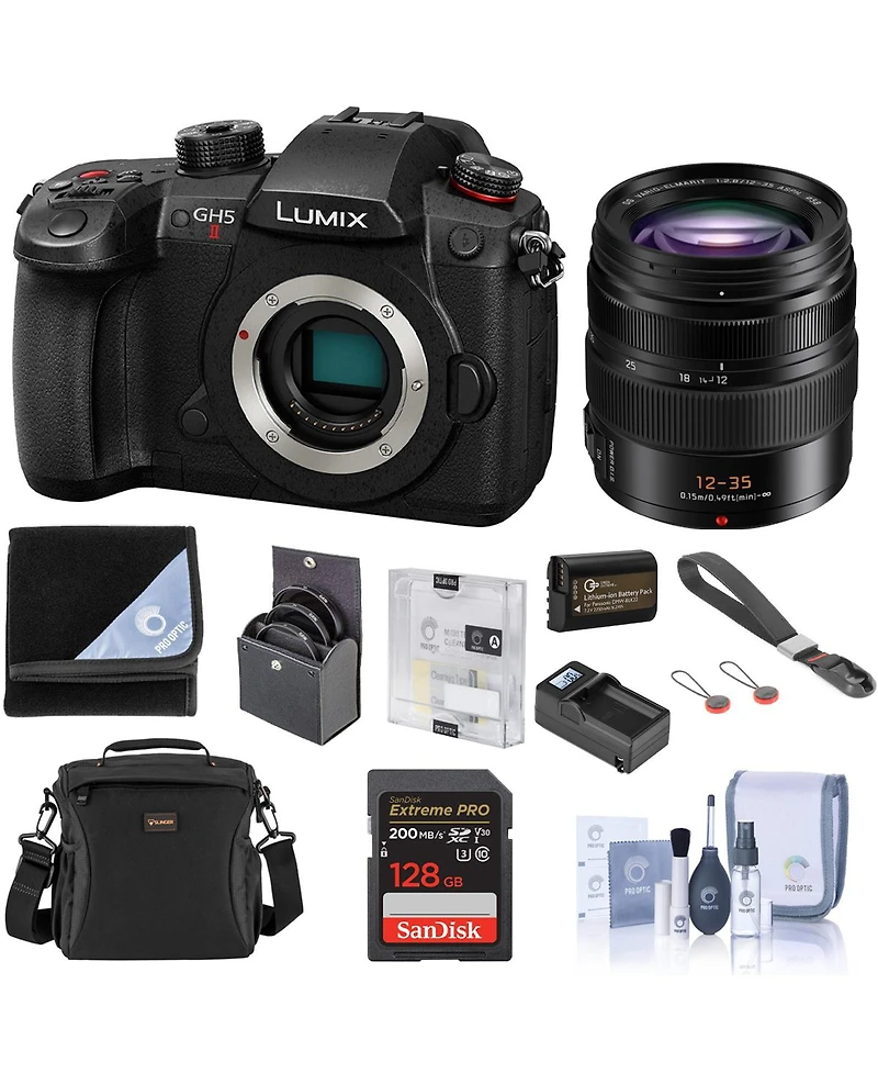 Panasonic Lumix GH5II Mirrorless Camera with Lumix G X Leica Dg Vario-Elmarit 12-35mm f/2.8 Lens, Battery Pack, Charger and 128GB Sdxc Memory Card