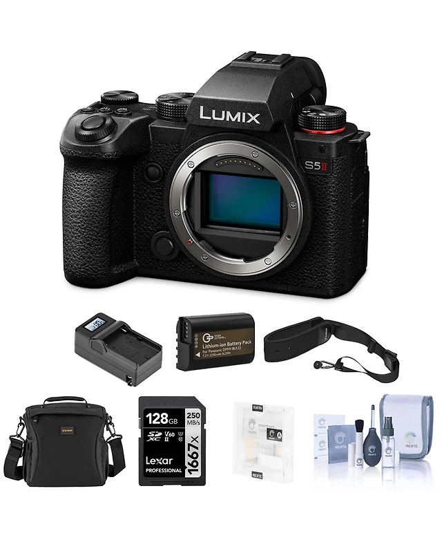 Panasonic Lumix S5II Mirrorless Camera Bundle with 128GB Sd Card, Shoulder Bag, Extra Battery, Charger, Screen Protector, Camera Strap, Cleaning Kit
