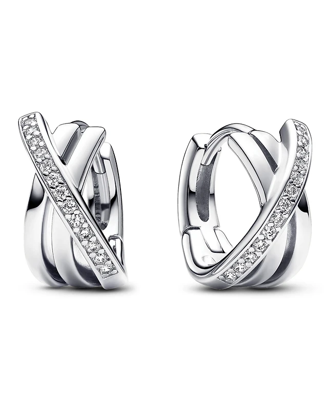Pandora Sterling Silver Crossover Pave Hoop Earrings