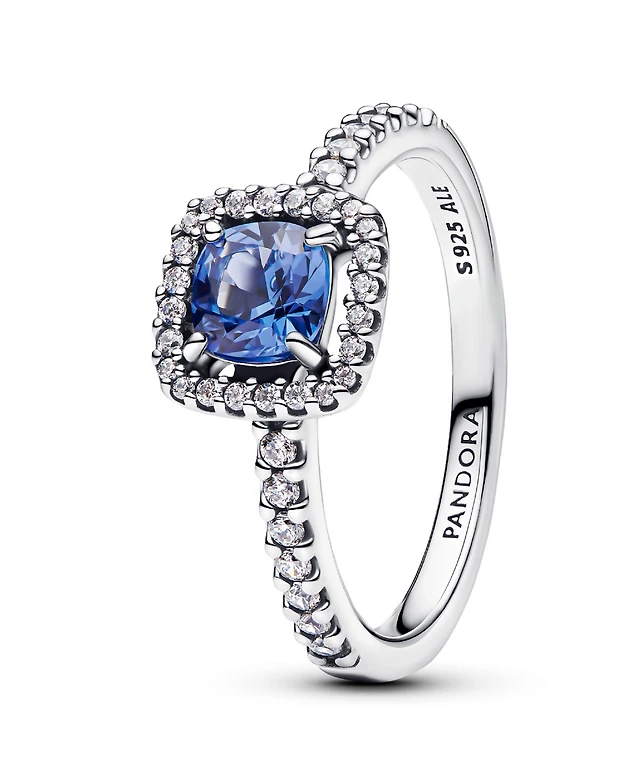 Pandora Sterling Silver Sparkling Square Blue Halo Ring
