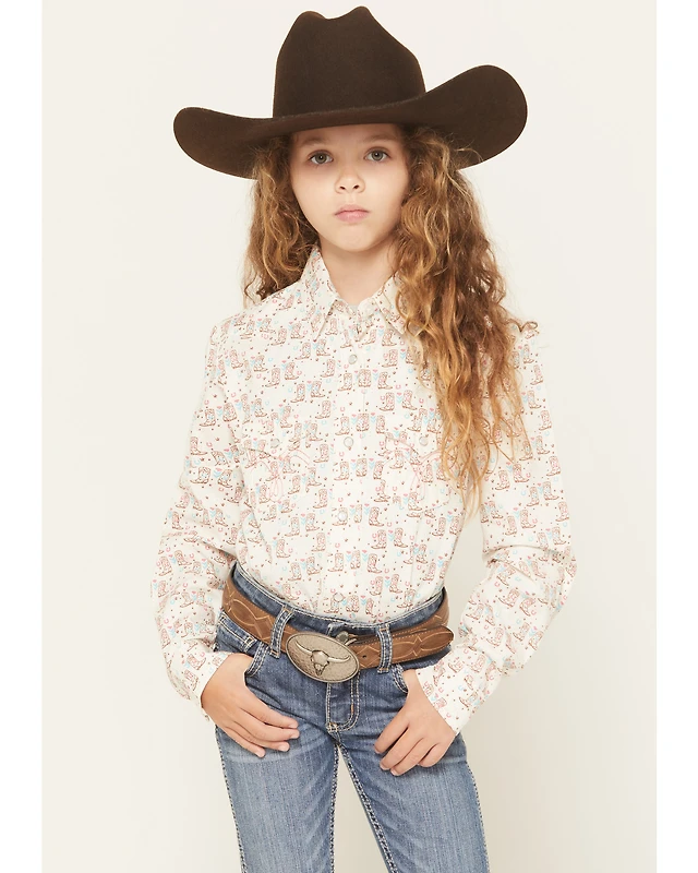 Panhandle Girls' Rodeo Print Long Sleeve Pearl Snap Western Shirt