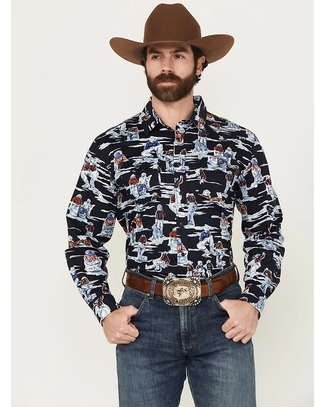 Panhandle Men's Vintage Patriotic Cowboy Long Sleeve Snap Western Shirt