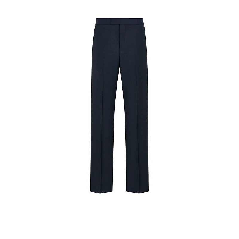 Tailoring is quintessential Dior atelier savoir-faire and lies at the heart of House heritage. The pants are crafted in blue wool and mohair jacquard, featuring front and rear creases that lend structure to the silhouette. Satin detailing further enhances the piece. The pants can be paired with the matching jacket. Satin detailing. Creases. V-shaped back detail. Zip and hook closure. Side slit pockets and rear piped pockets. 76% wool, 24% mohair and lining: 100% viscose. Made in Italy