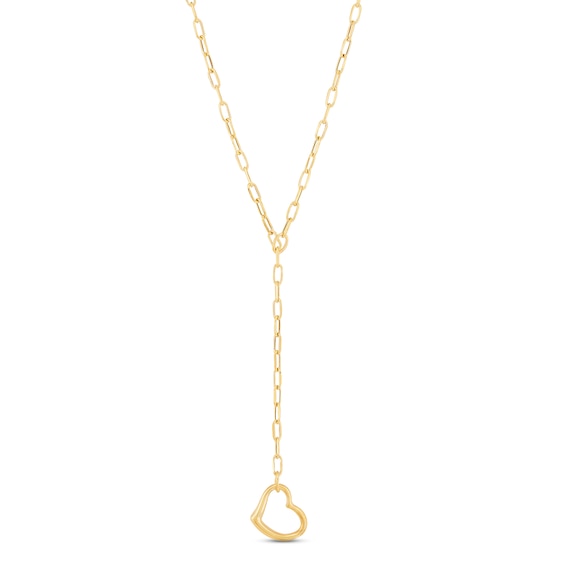 Paperclip Lariat Heart Necklace 10K Yellow Gold 18"