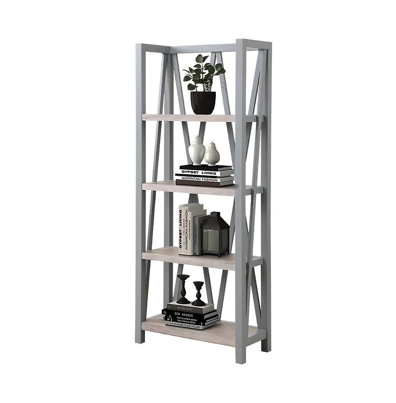 Perfect on it its own or bunched together for impact, the Americana Modern Etagere Bookcase is a design essential. Featured in a dove grey finish with contrasting wood-grain shelves, it offers generous space for display and storage. From books and accessories to favorite photos, you'll love how they look in this stylish bookcase.